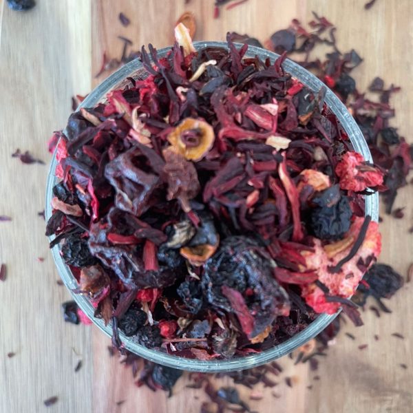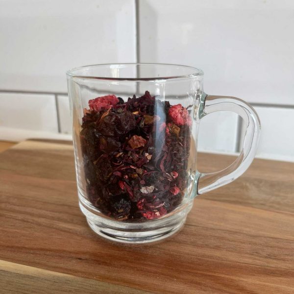 Bazę naparu stanowi hibiskus, który nadaje mu głęboki rubinowy kolor i przyjemnie orzeźwiający charakter. Dzięki naturalnie bezkofeinowej formule jest to doskonały wybór dla osób poszukujących soczystej, owocowej herbaty na każdą porę dnia — zarówno na ciepło, jak i w formie orzeźwiającej herbaty mrożonej.