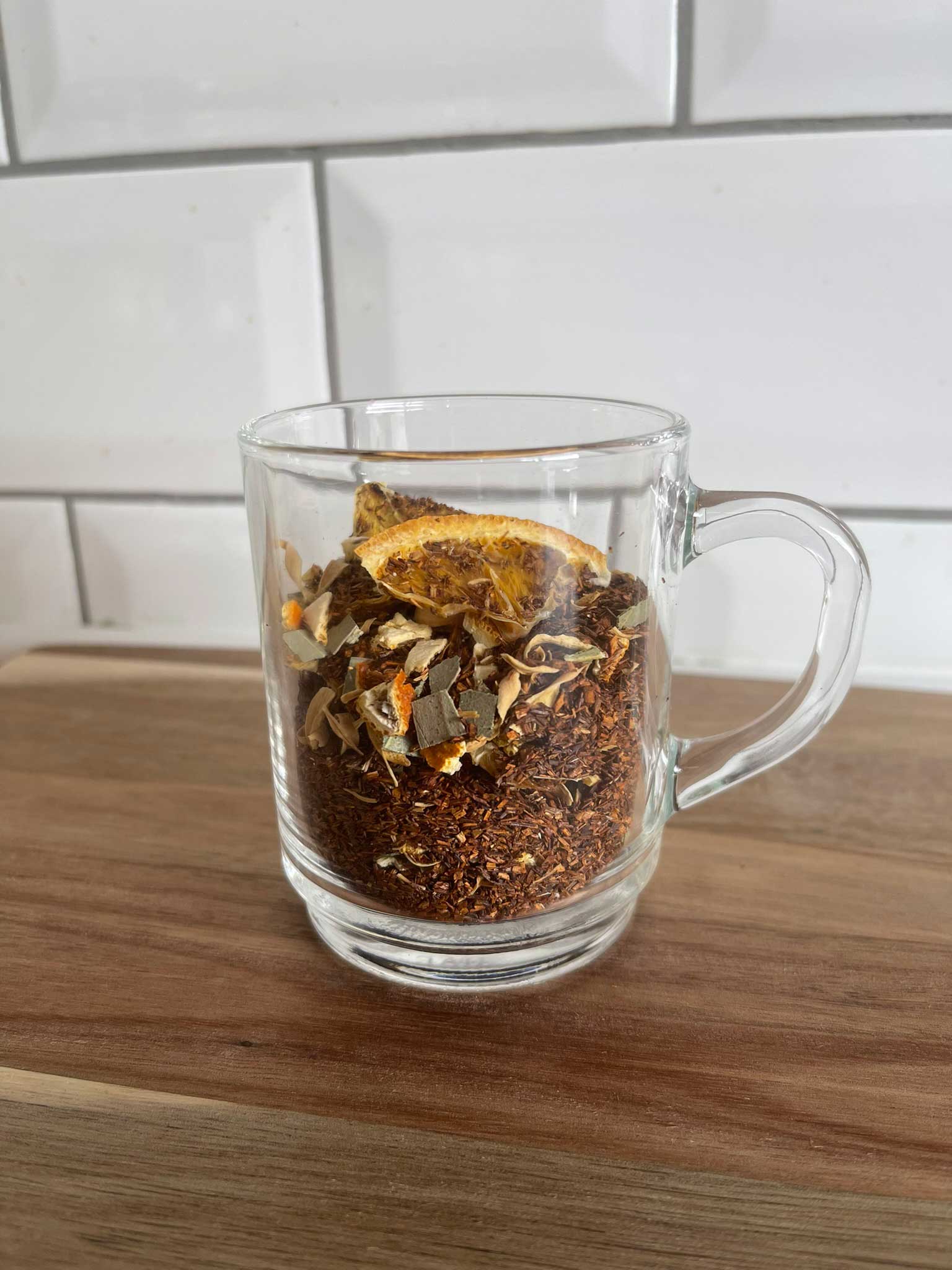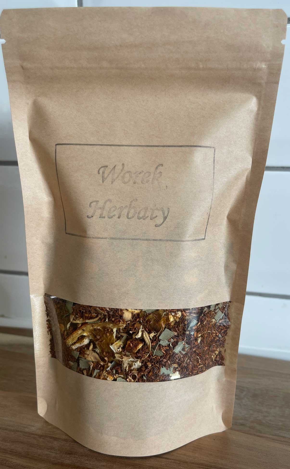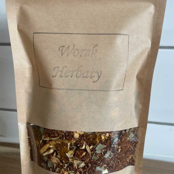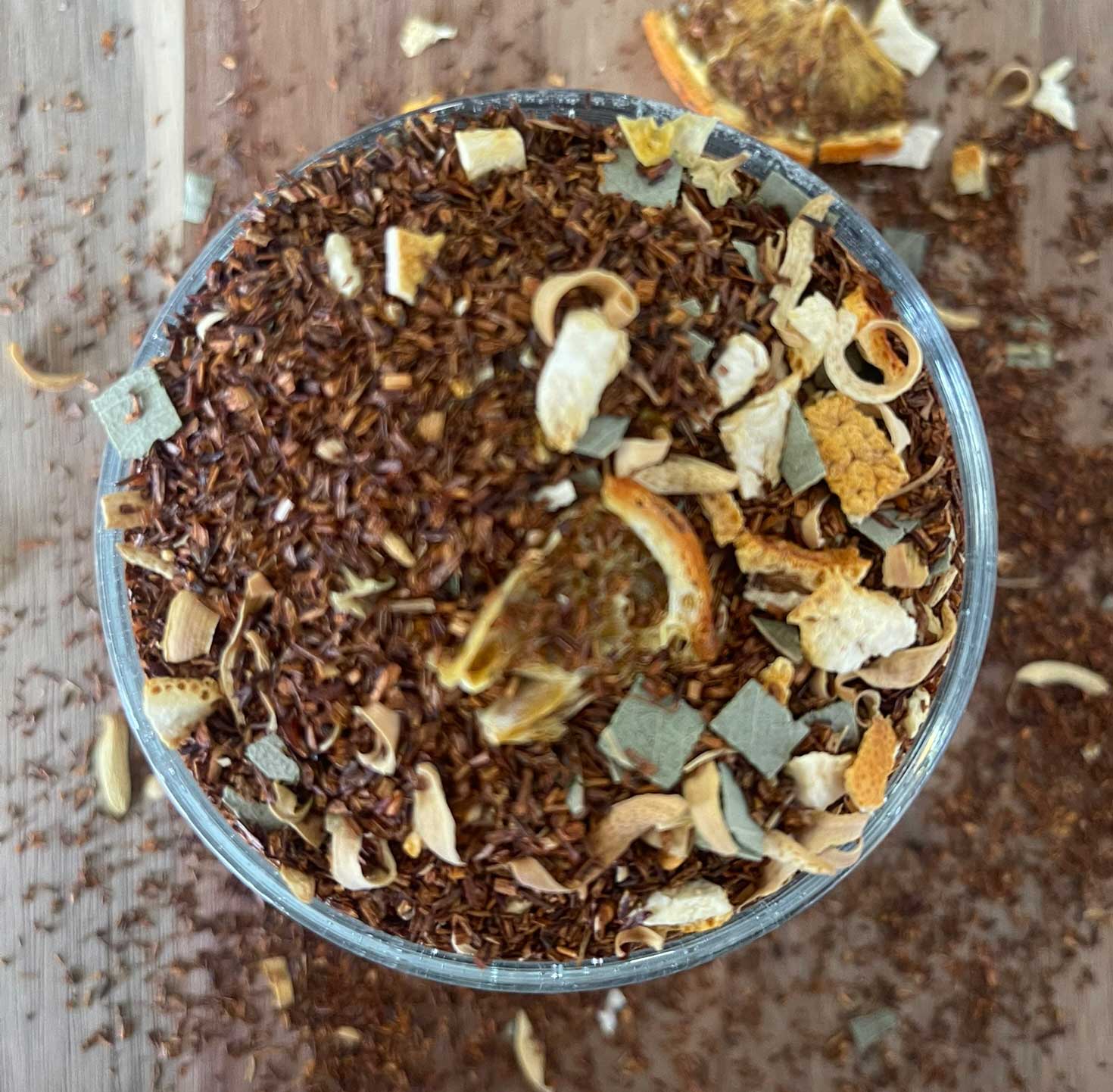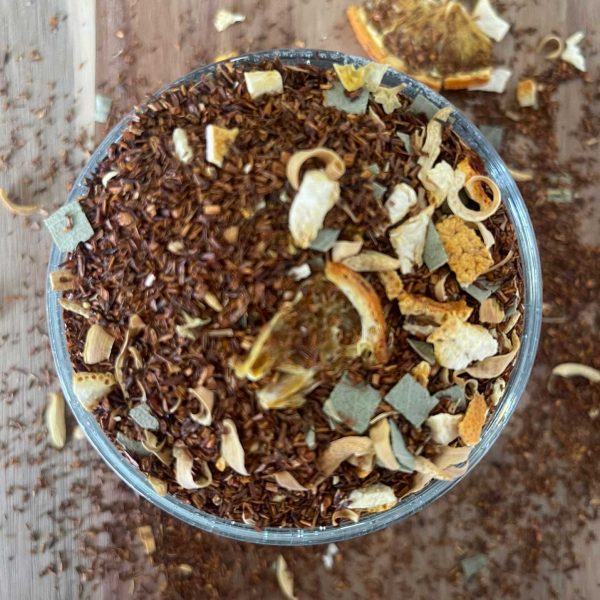 Skład: Rooibos Medium, pomarańcza susz, pomarańcza liofilizowana, eukaliptus, kwiat pomarańczy